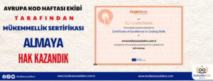 Kodlama Özel Ders ailesi olarak, Avrupa Kod Haftası etkinlikleri kapsamında öğrencilerimizle birlikte gerçekleştirdiğimiz robotik kodlama ve programlama projeleriyle Avrupa Kod Haftası ekibi tarafından “Mükemmellik Sertifikası” almaya hak kazandık!